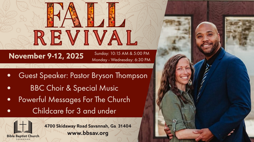 Bible Baptist Church of Savannah puts a strong emphasis on the preaching of God's Word. We invite you to listen to our most recent Sermon and pray that you will be blessed by these spiritual truths.